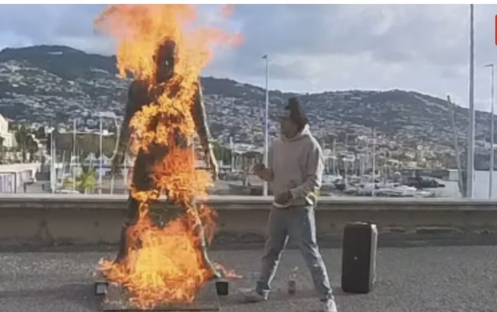 Um ato de vandalismo atingiu um dos principais pontos turísticos da Ilha da Madeira, em Portugal. A estátua de Cristiano Ronaldo instalada na área externa do Museu CR7 foi incendiada por um homem que filmou toda a ação e divulgou as imagens nas redes sociais.